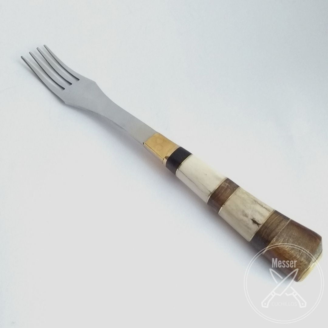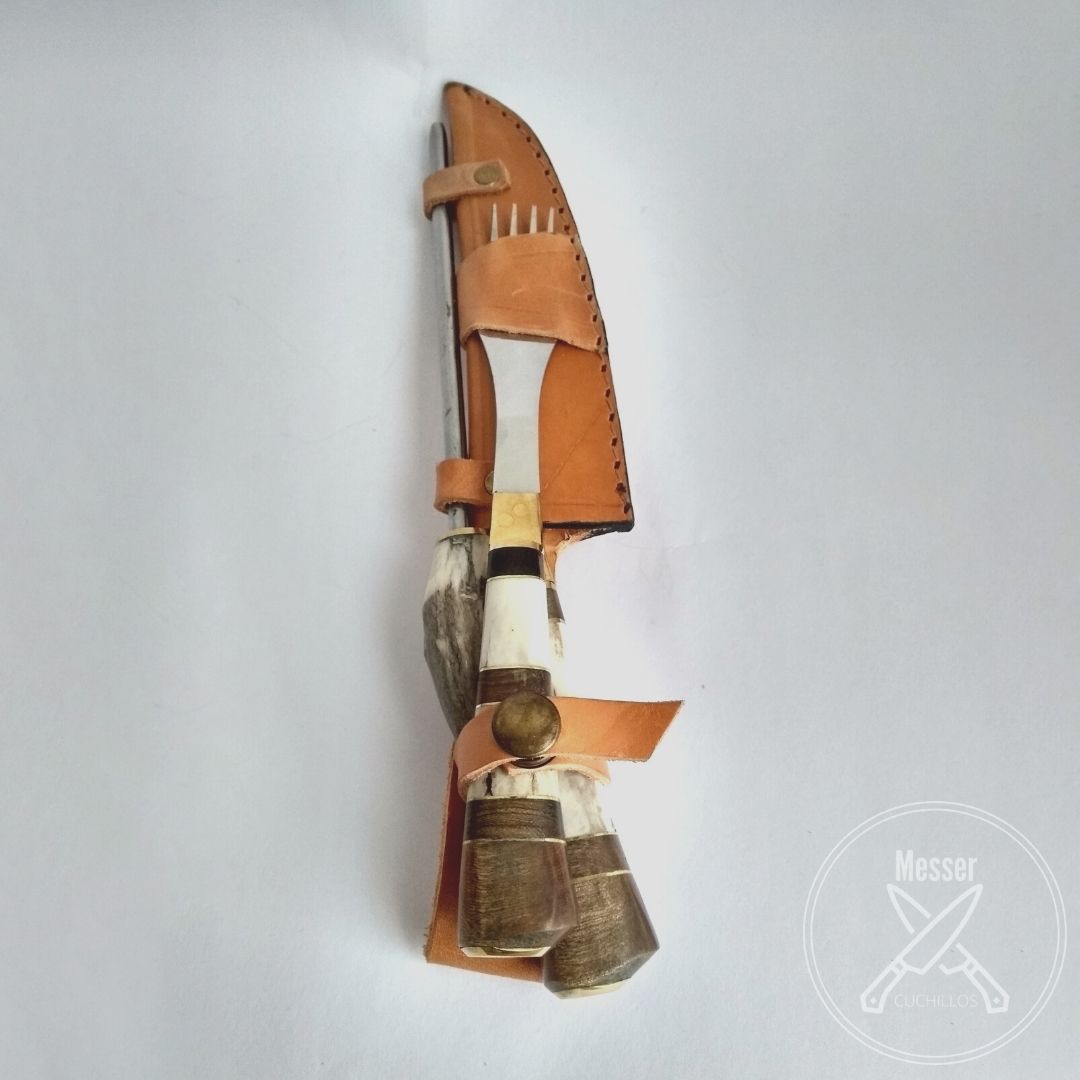 Juego combinado de asta de ciervo y madera guayubirá con detalles en bronce