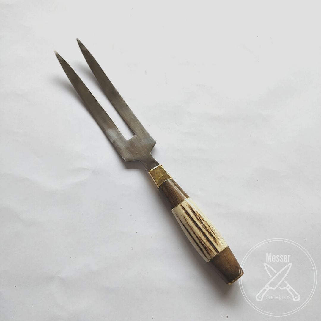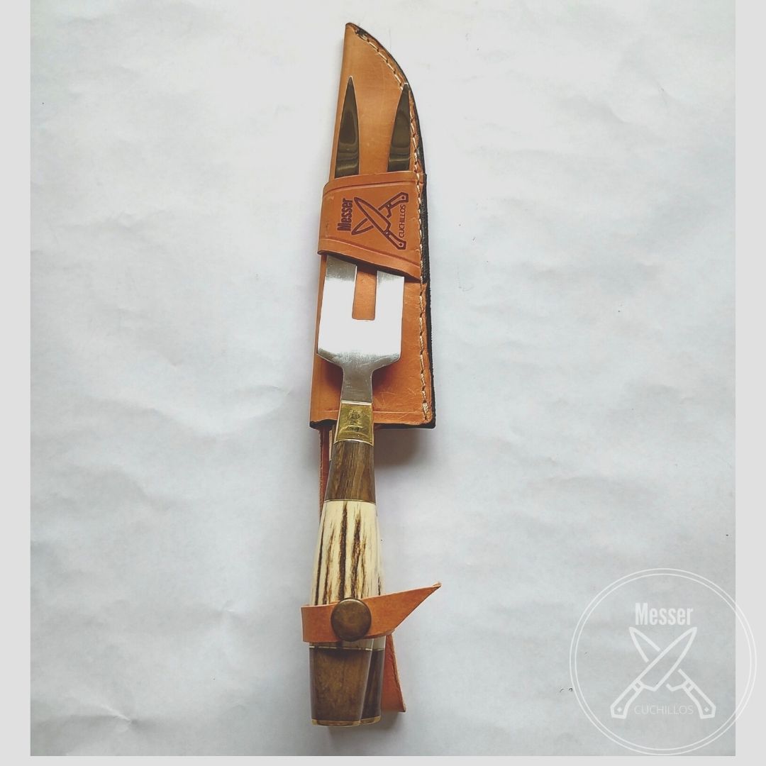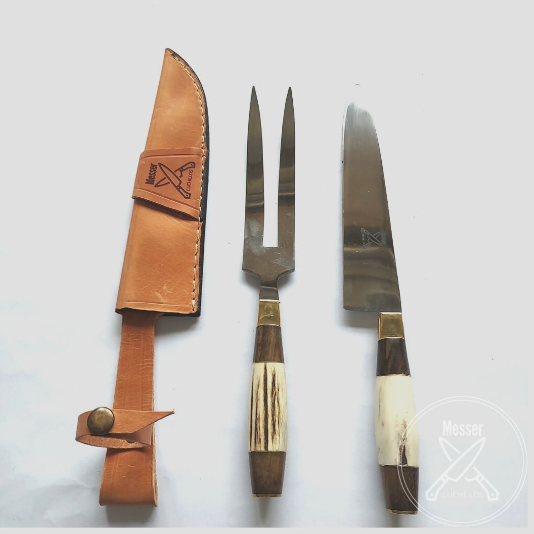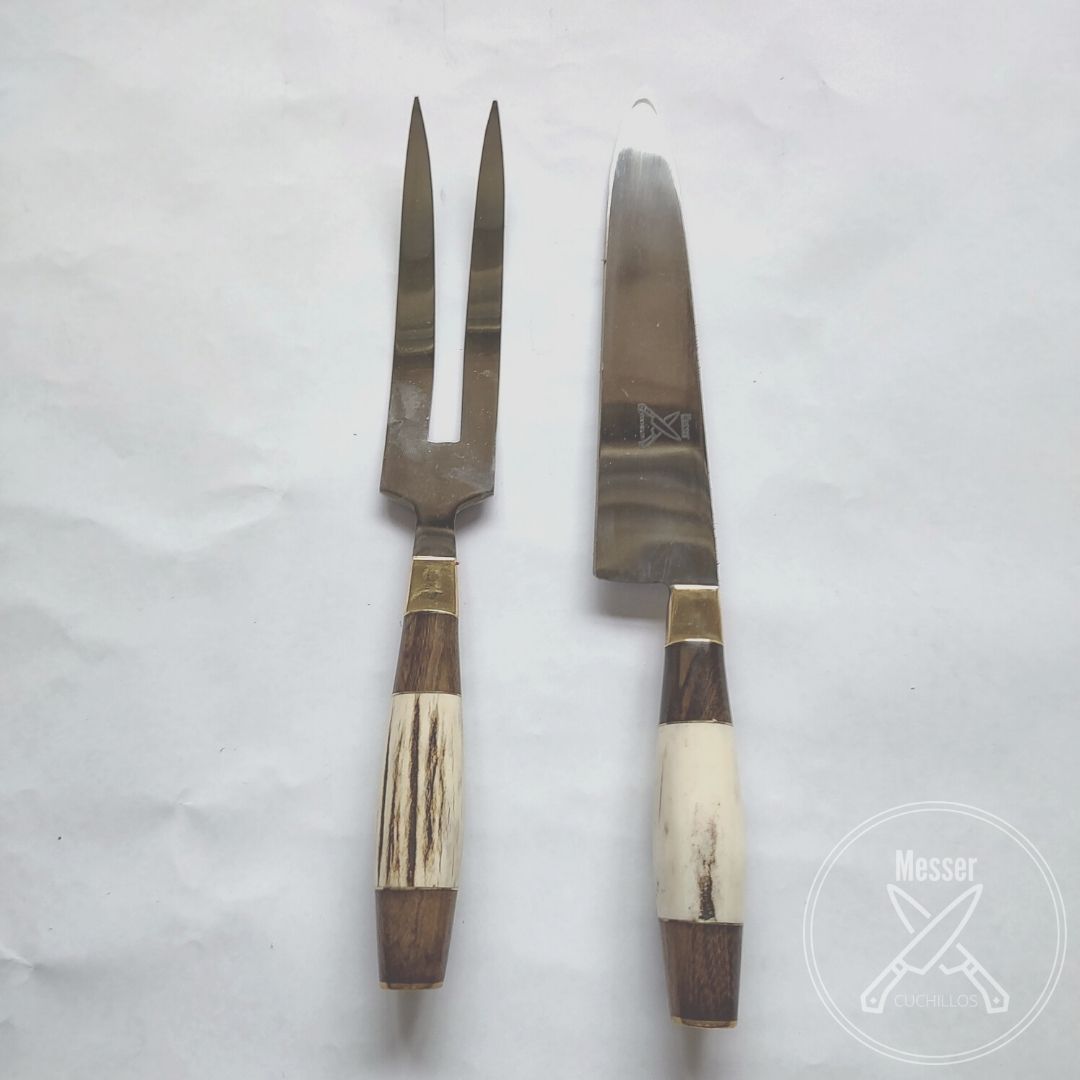 Juego combinado de madera guayubirá y asta de ciervo con detalles en bronce