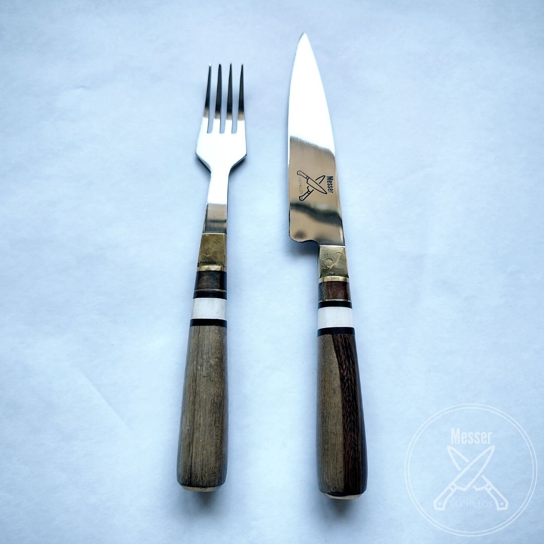 El cuchillo y el tenedor son de acero inoxidable