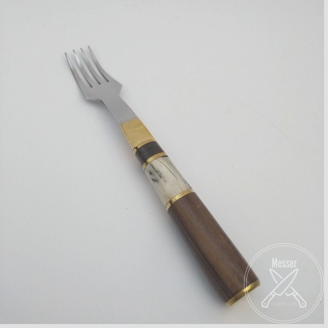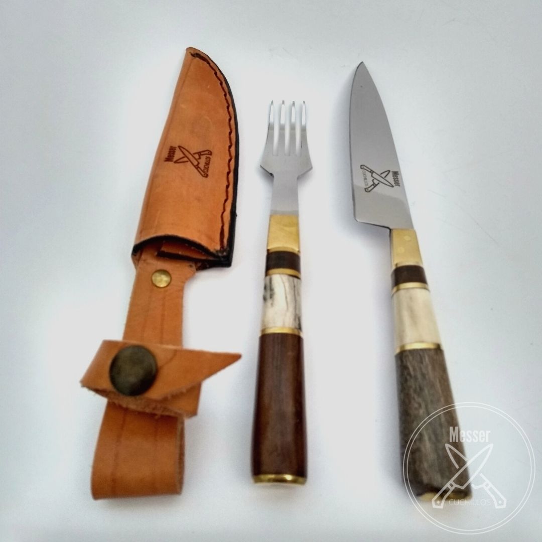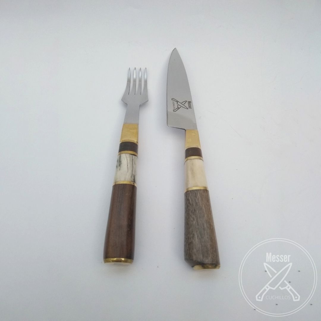 Juego combinado de asta de ciervo y madera guayubirá con detalles en bronce